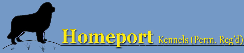 "Homeport" was founded in 1983 when I decided to develop my own kennel rather than continue to breed under co-ownership with my parents whose permanently registered "harbour beem" kennel of Harbour Grace, Newfoundland had been my focus up until that point in my life. As a result, having moved to New Brunswick by that time from my native Newfoundland, I moved my own dogs from Harbour Grace to just outside Fredericton, where Homeport has since remained.